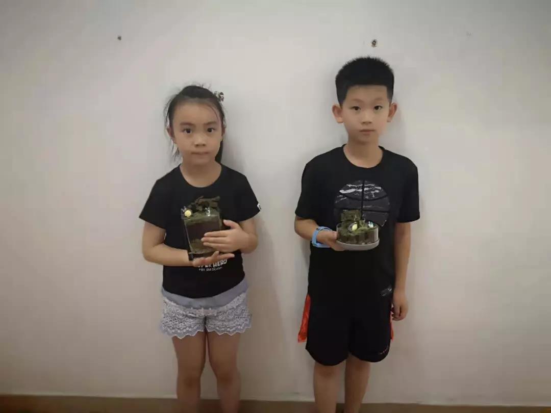 接下来,就是动手阶段啦,课堂氛围也达到了高潮。小朋友们拿出自己早先准备的容器,老师把材料分发给大家并一步步悉心指导,铺青苔、泥土、石子等,再加以龙猫、风车等小摆件做点缀,简单精美的微盆景就完成啦。小朋友们看到自己的成果,都很兴奋激动。通过这节课同学们不仅寓教于乐、学会了如何制作微盆景,也很好地提高了动手能力。
