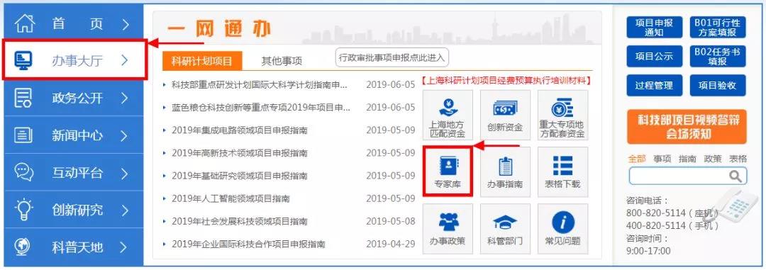 1办事网址入口:上海科技网站(http://stcsm.sh.gov.cn)“办事大厅”—“专家库”。